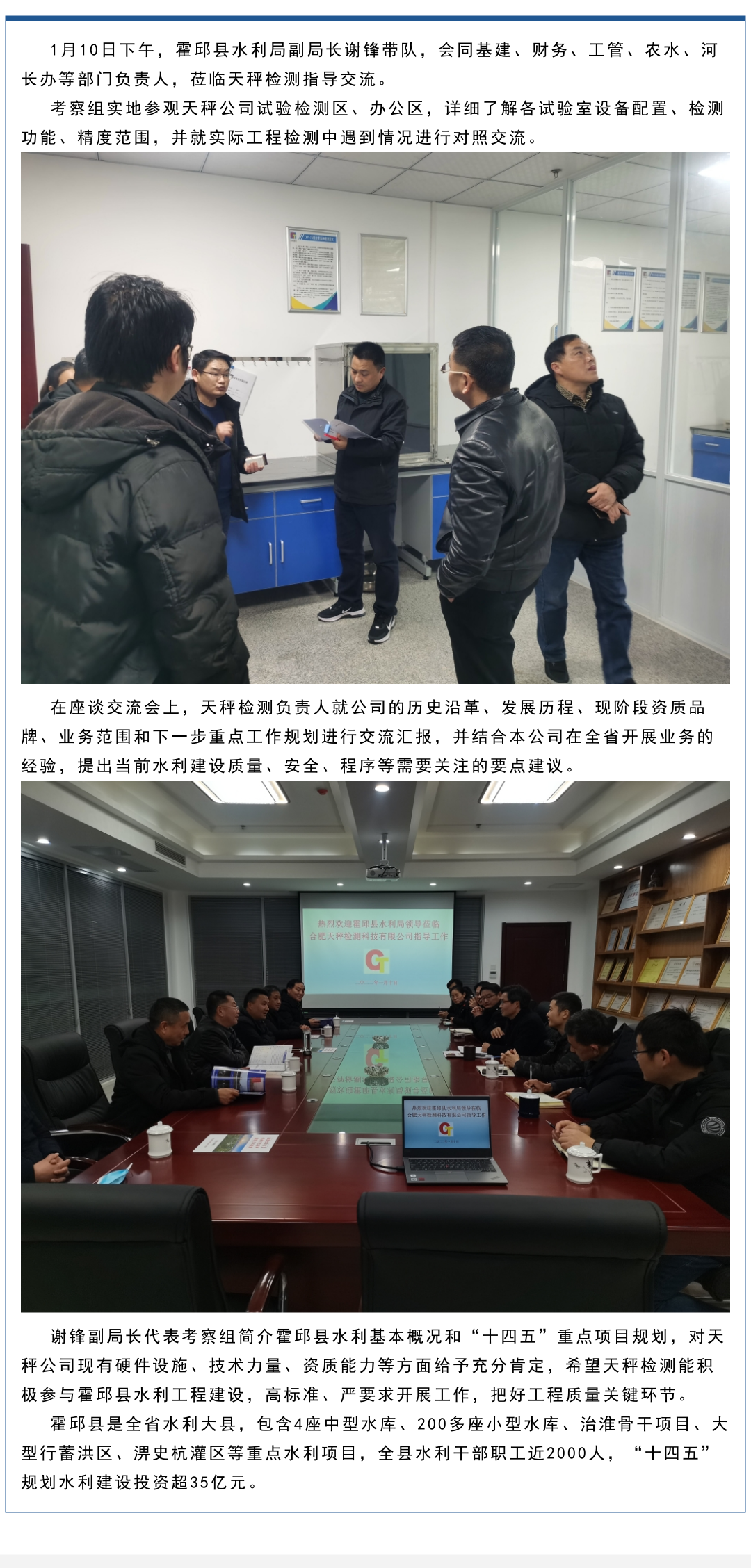 霍邱縣水利局副局長謝鋒一行來天秤檢測考察