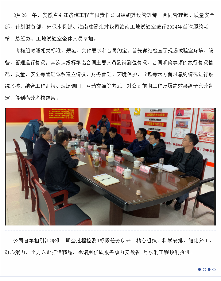 天秤檢測引江濟淮項目現場試驗室履約考核取得佳績